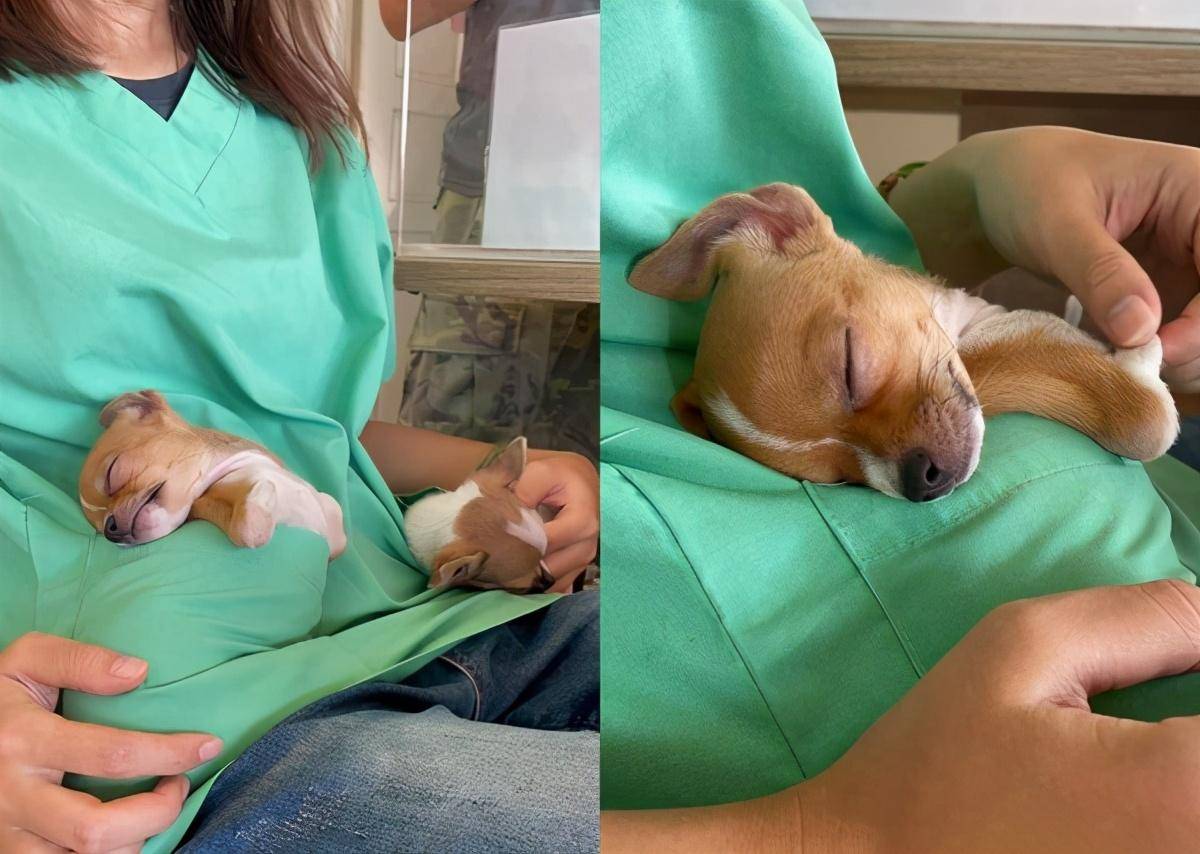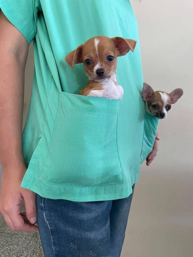 很快收容所的工作人员到来,果真看到了两只体型很小的吉娃娃无力地缩在纸箱里,工作人员仔细一看,突然震惊了起来。